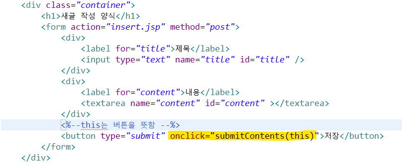 html 작성 폼 생성 및 제출 시의 함수 등록하기
