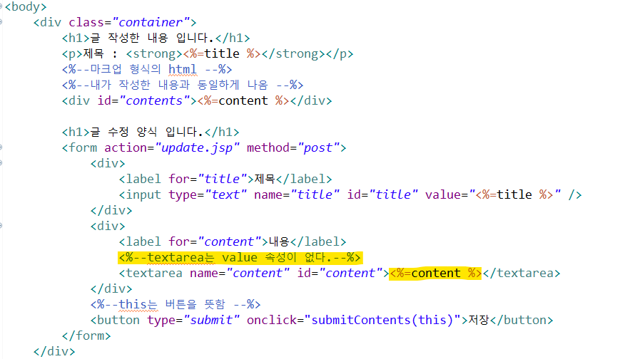 글 수정 양식(기존에 입력한 내용을 갖고오기)
