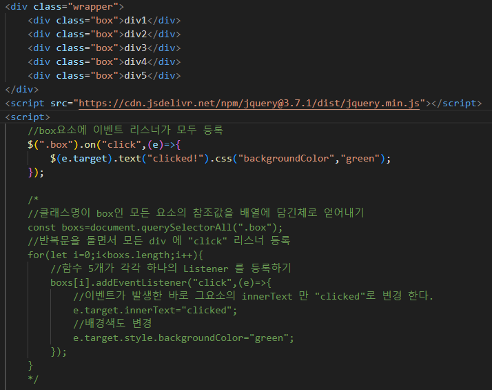 이벤트가 발생한 html요소를 선택할 때, 이벤트가 발생한 요소 선택은 e.target로 작성 가능