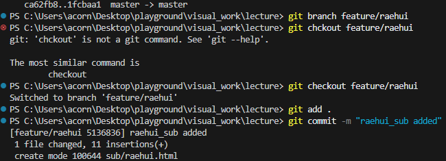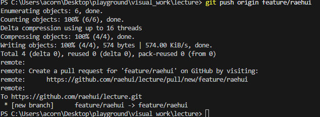 내가 받은 로컬에서 다른 작업을 수행시 branch 를 하나 만들어서 그 브랜치를 올리기