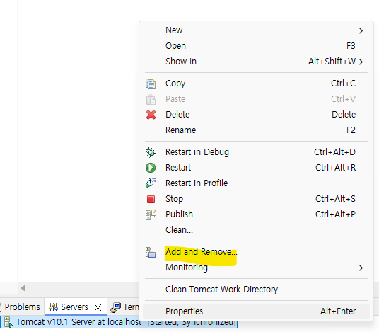 -> 이름 : 톰캣서버로 등록하기