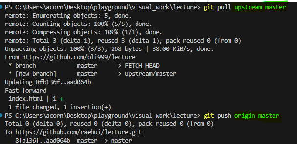 fork와 clone 는 한번만 수행된다. 나의 깃허브를 수단으로 pr을 수행함.