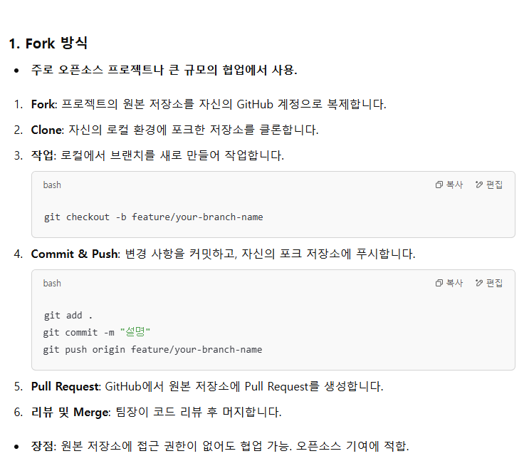 브랜치를 새로 만들어서 작업 후 push