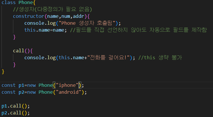 자바스크립트에서는 class 밖에 필드를 선언하지 않고 생성자 안에 작성하자!