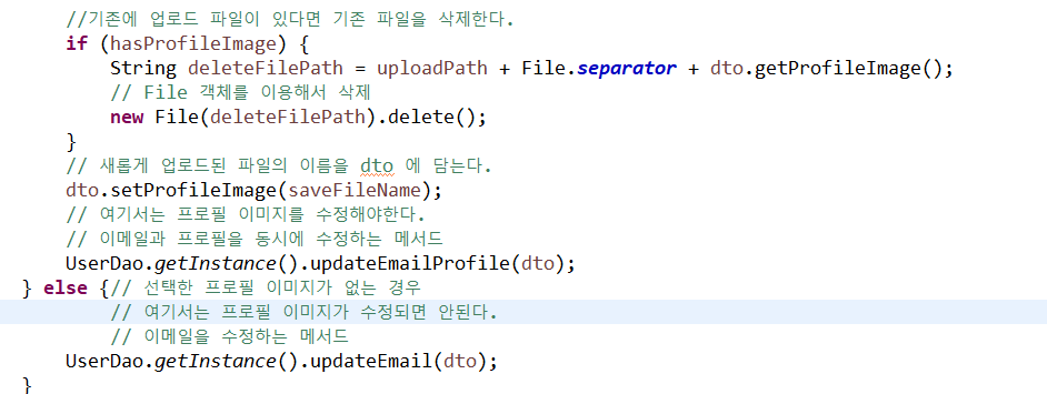 하나로 합친다면 이메일만 수정하는 경우에도 프로필 이미지가 삭제될 수 있기에 나눴음.