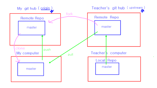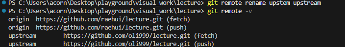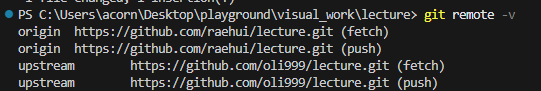 fork(강사님)의 저장소를 upstream 이라는 이름으로 clone 된 local 저장소에서 등록하기