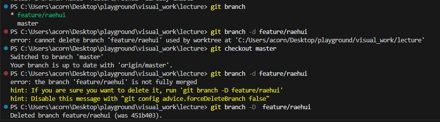 merge 된 이후에 master 로 checkout하고