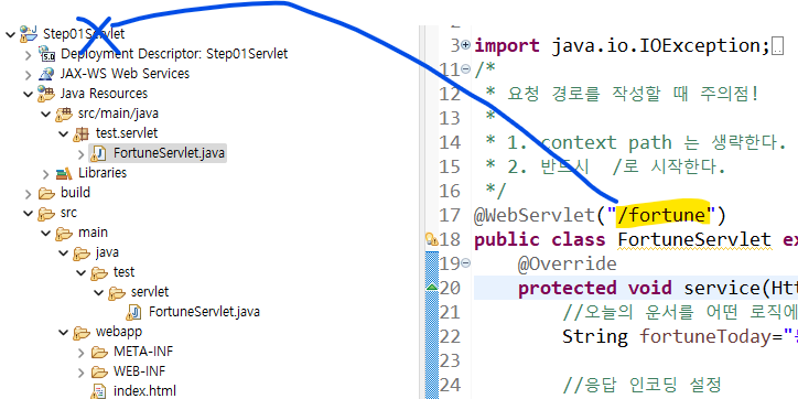 <servlet에서 요청 경로 작성 시 주의점>