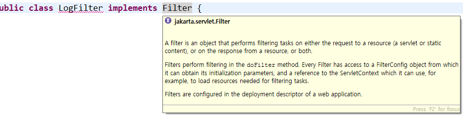 우리가 사용하는 필터는 jakarta Filter 이다.
