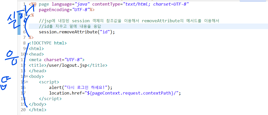 => req에서는 웹브라우저의 요청말 , resp는 서버의 응답말