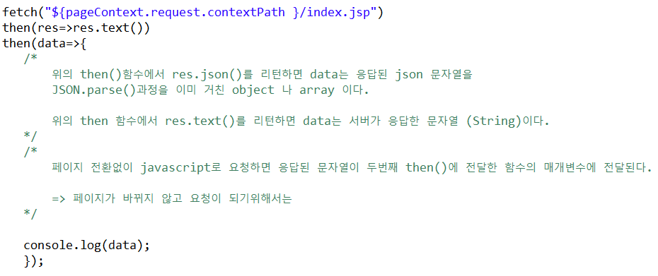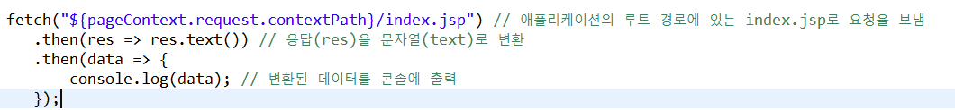 루트 경로에 요청을 보냄 -> 응답을 받아서 text로 변환 -> 변환된 데이터를 받아서 콘솔에 출력