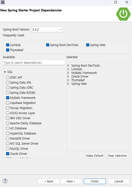 프로젝트 설정 : Oracle Driver, MyBatis Framework 체크하기