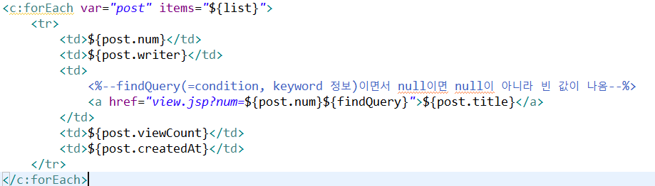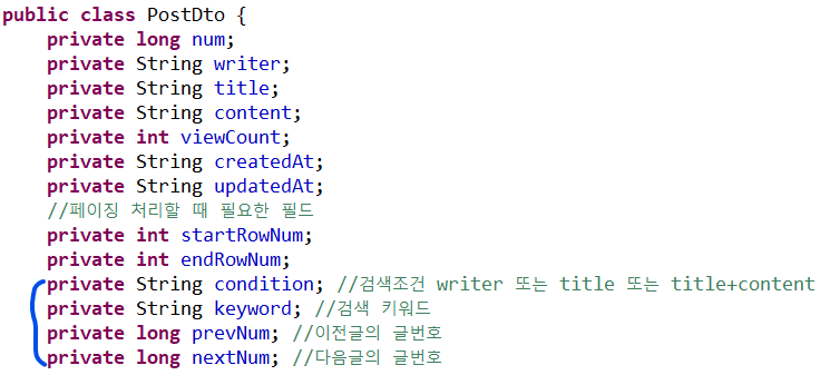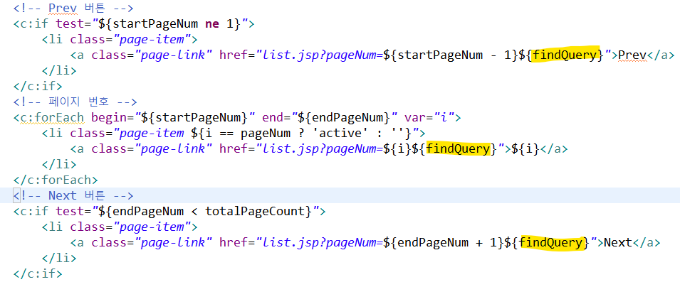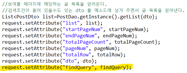 - 검색 키워드가 있는 경우에 따라서 바인딩 && 페이징 처리에 관련된 값도 바인딩한다.