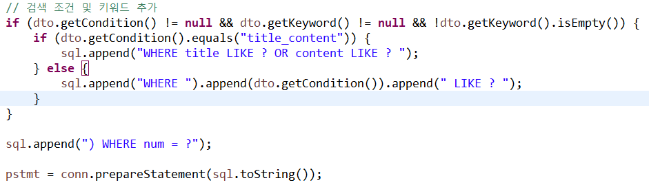 - if 조건을 만족하면 where 조건에 맞는 글만 검색이 되고 만족하지 못하면 모든 글이 검색이 된다.