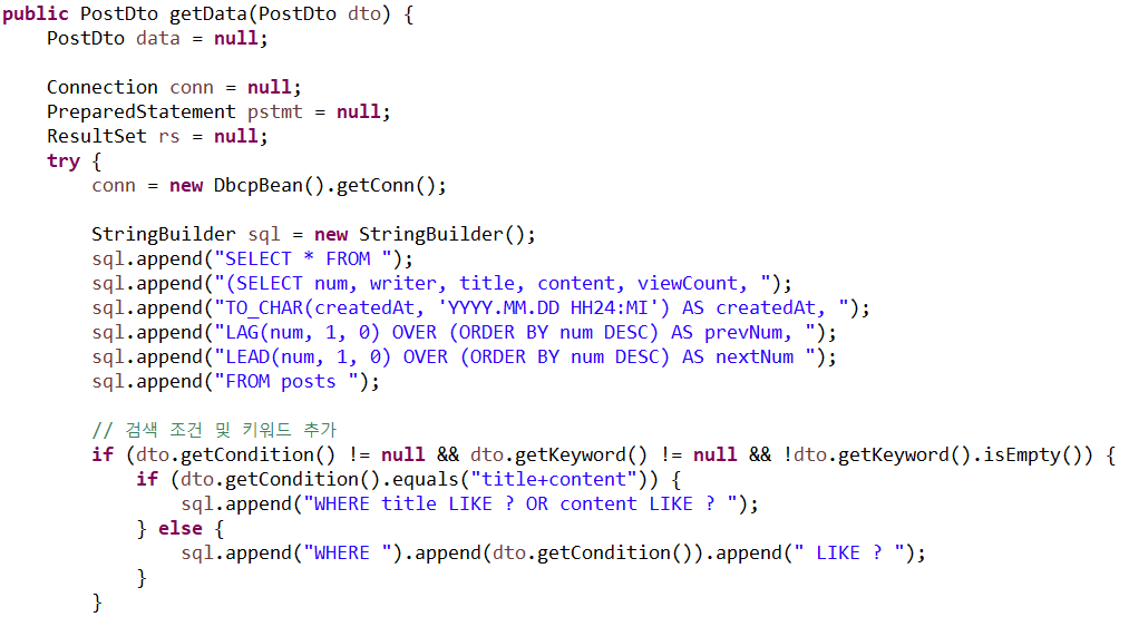 1-2. 검색 조건에 따라 글을 가져오기 = getData(PostDto)