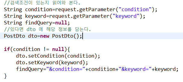 = "&condition=writer&keyword=stone"이 파라미터에 붙을 수도 안 붙을 수도 있다.