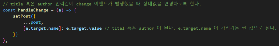 Form의 handleChange 은 post 상태값을 업데이트 역할