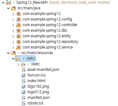 React 를 실행하지 않고 spring 만으로 앱이 실행된다.