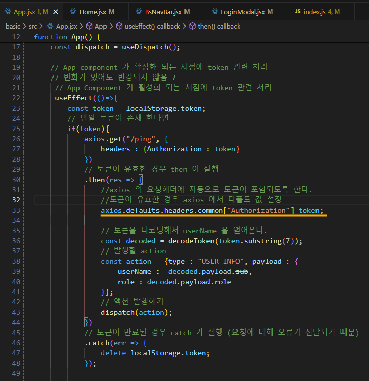 다음 axios 요청 시에 자동으로 헤더에 토큰을 들고 감