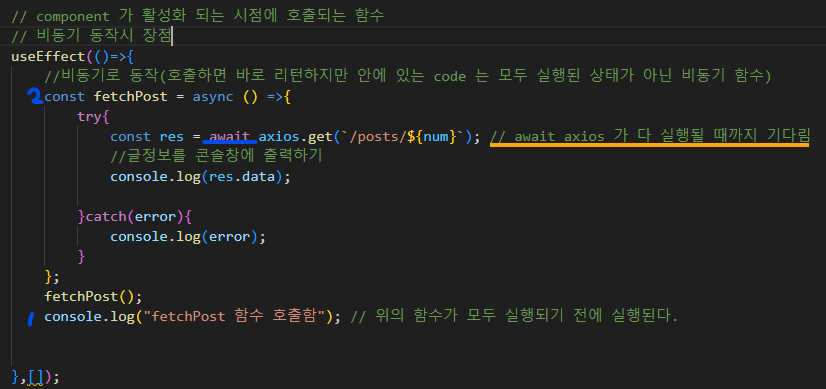 //예시코드 const [postRes, commentsRes] = await Promise.all([ axios.get(`/posts/${postId}`), // 게시글 데이터 요청 axios.get(`/posts/${postId}/comments`) // 댓글 데이터 요청 ]);