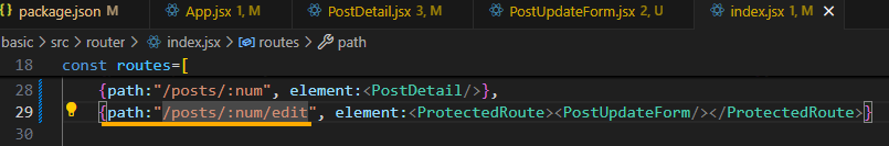 동적 파라미터 추가 시 router 의 path ": 파라미터명 " 작성하기