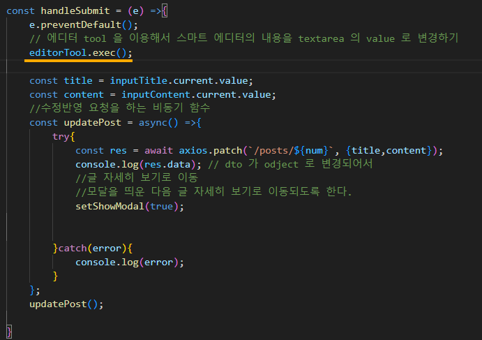 스마티에디터 1. 렌더링 시 초기화 작업 2. 서버 전송 시 textarea 의 value 로 변경