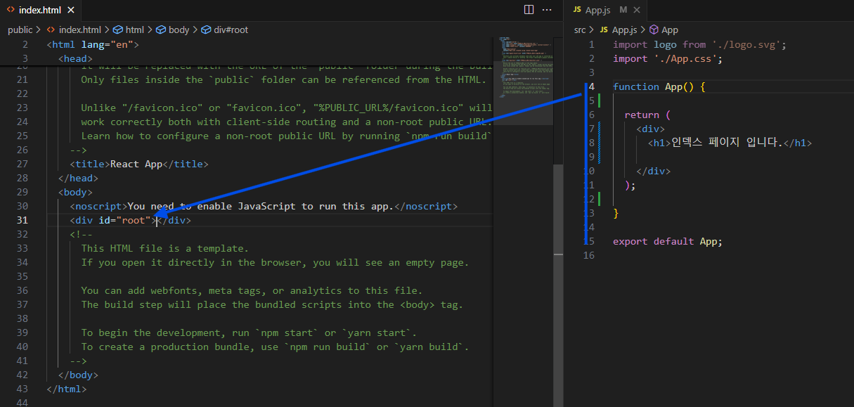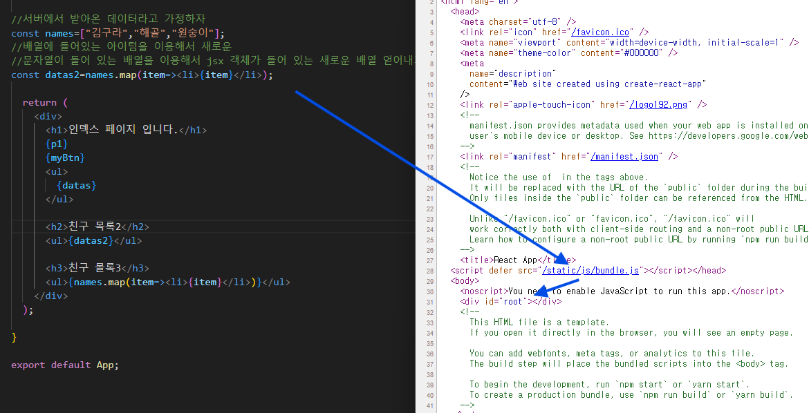 요소와 동작을 만들어서 html에 끼어 넣을 수 잇다.