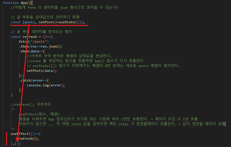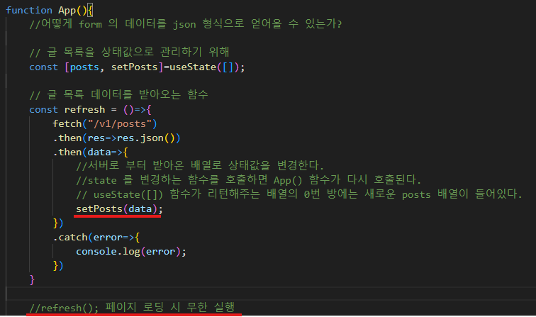 App 함수 안에 함수가 존재할 때 무한루프 문제가 발생한다.