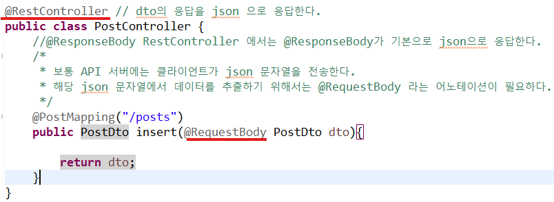 @RequestBody : 요청 json 문자열에서 데이터 추출