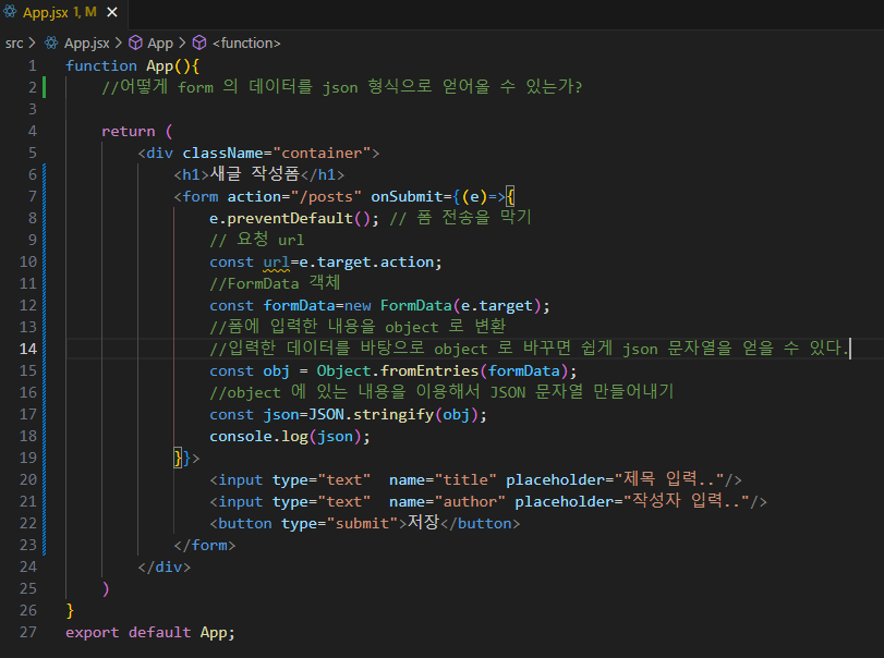 어떻게 form 데이터를 json 형식으로 얻어올 수 있는가? fetch , axios