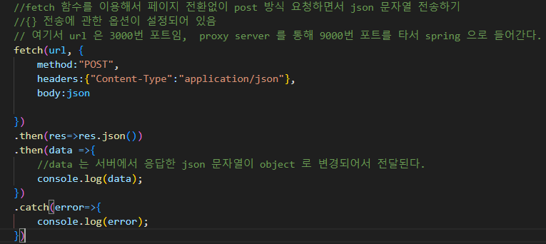 React 는 Spring 에 json 형식으로 데이터를 보낸다.