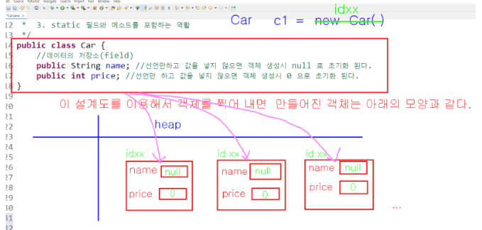 - 필드(field) : 필드는 클래스의 속성을 나타내는 변수!!!