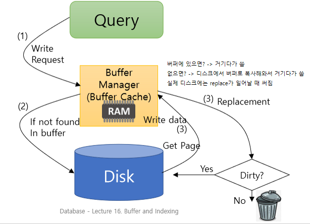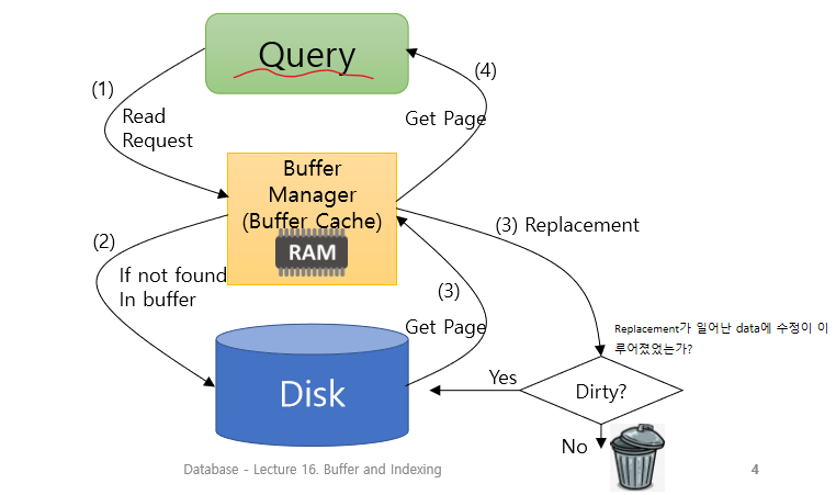 Buffer: disk block의 copy를 저장할 수 있는 main memory의 부분