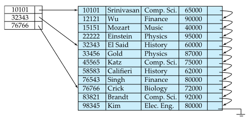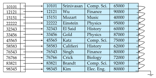 Ex) instructor relation의 ID에 관한 index