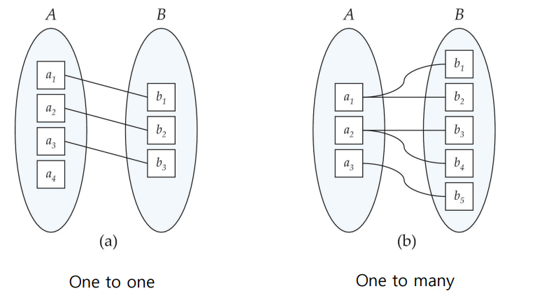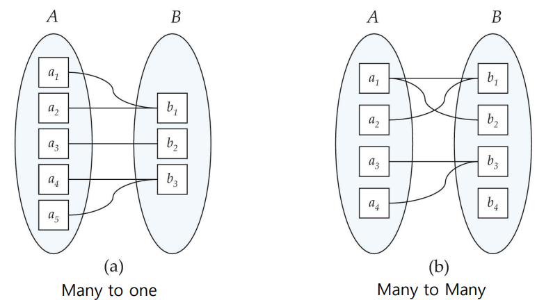 binary relationship에서 각 entity set이 어떤 방식으로 연결되어있는지