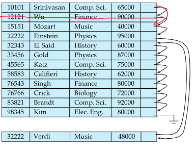 삭제 - 삭제한 record 앞, 뒤 record들을 포인터로 연결 (실제 삭제는 rewrite할 때 수행됨)