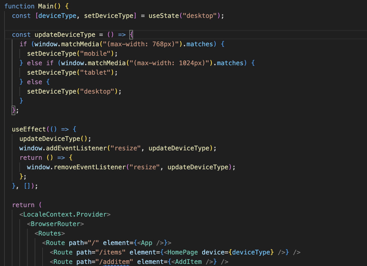 디바이스 타입 감지 로직을 최상위 컴포넌트에 두면, 앱 전체에서 공통된 기준을 사용해 디바이스를 구분할 수 있을것 같았다.
