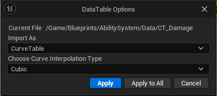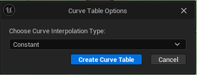 에디터로 돌아와서 CurveTable 을 생성할 경로로 간 다음