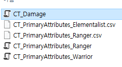 기존에 생성해둔 CT_PrimaryAttributes_Warrior.json 파일을 복사하여 CT_Damage로 rename하고 수치를 수정한다.