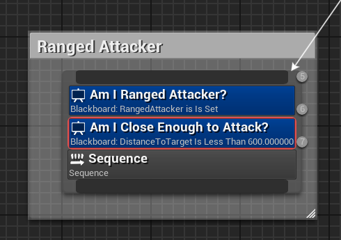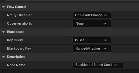 BT_EnemyBehaviorTree 의 Ranged Attack Sequence -> BTT_Attack 에서 Combat Target Selector 를 TargetToFollow 로 설정하고, 노드명을 Ranged Attack 으로 변경한다.