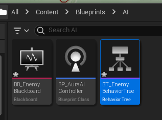 이제 AuraAIController 가 사용할 BlackBoard 와 BehaviorTree 블루프린트를 생성한다.
