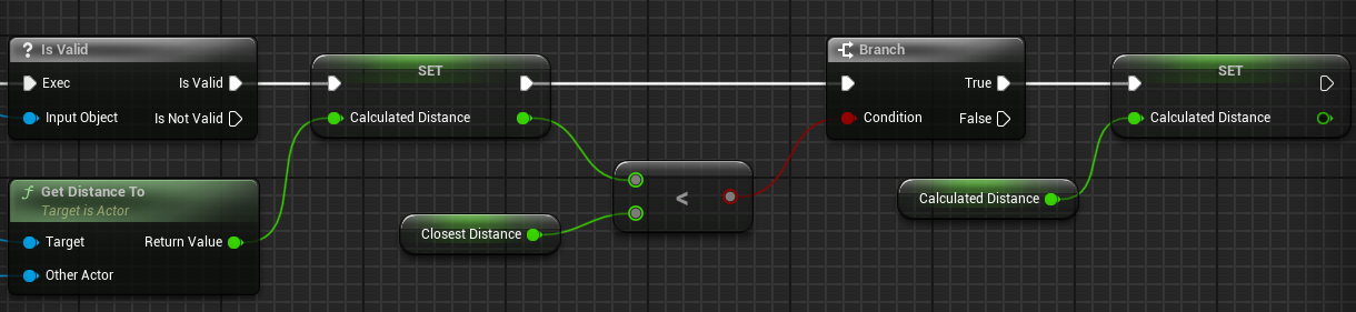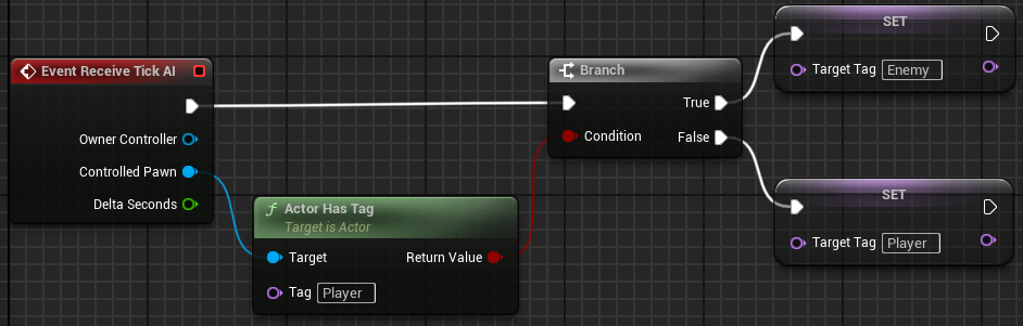 Controlled Pawn 으로부터 Set Combat Target 노드를 생성하여 연결하고, BT_EnemyBehaviorTree 로부터 얻어낸 값을 In Combat Target 핀과 연결하여 CombatTarget 을 설정해주고, 해당 과정을 유효성 검사 이후에 진행하도록 한다.