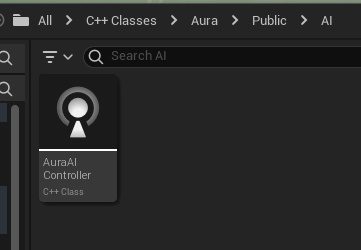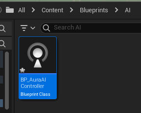 컴파일 후 에디터에서 AuraAIController 기반 BP_AuraAIController 블루프린트 를 생성하고
