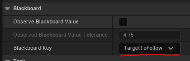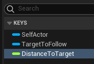 이어서 타겟과의 거리를 확인하기 위한 float 타입의 DistanceToTarget 키도 추가한다.