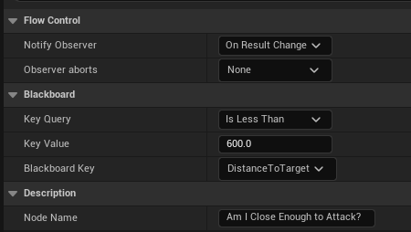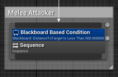 동일하게 Melee Attack Sequence -> Attack 에서 Combat Target Selector 를 TargetToFollow 로 설정하고, 노드명을 Melee Attack 으로 수정한다.