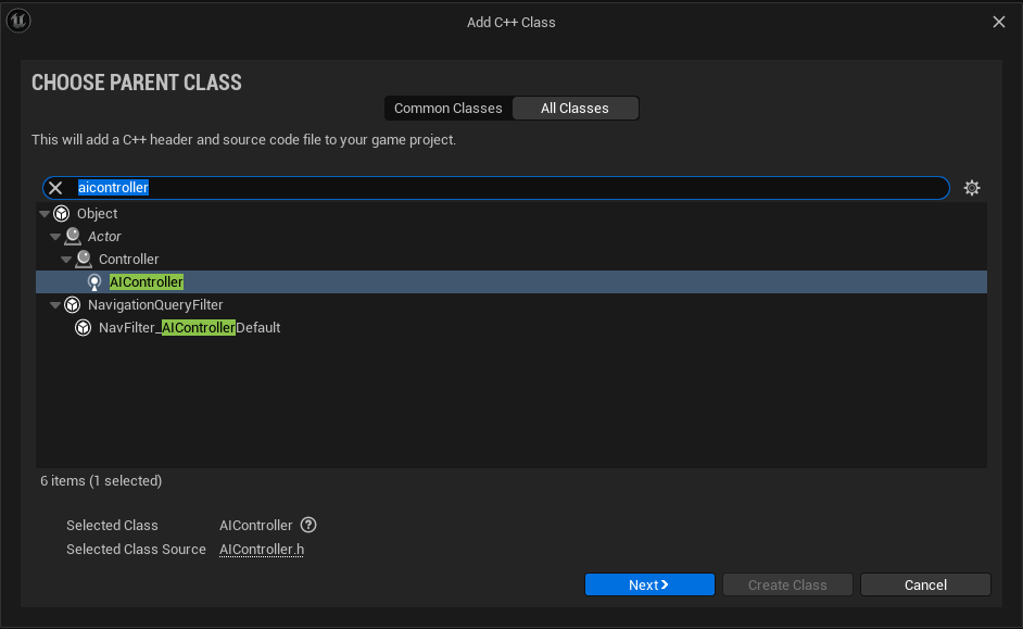 AI관련된 기능 사용을 위해서는AIModule를Build.cs파일에 추가해야함PrivateDependencyModuleNames.AddRange(new string[] { "...", "AIModule" });
