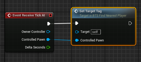 BTS_FindNearestPlayer 의 Function 탭에서 Override 클릭 후 Receive Tick AI 를 선택하고, Owner Controller 를 뷰포트에 출력하도록 노드를 구성하여 실행하면 현재 적용중인 Controller 를 확인할 수 있고