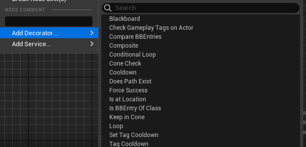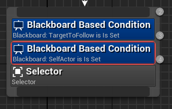 -> 두번째 자식노드 성공 -> 부모인 Selector에게 전달 -> 세번째 자식노드 실행xSelector 는 Composite Node 라고도 할 수 있으므로 특정 타입( Decorator , Service )의 노드를 부착할 수 있다.