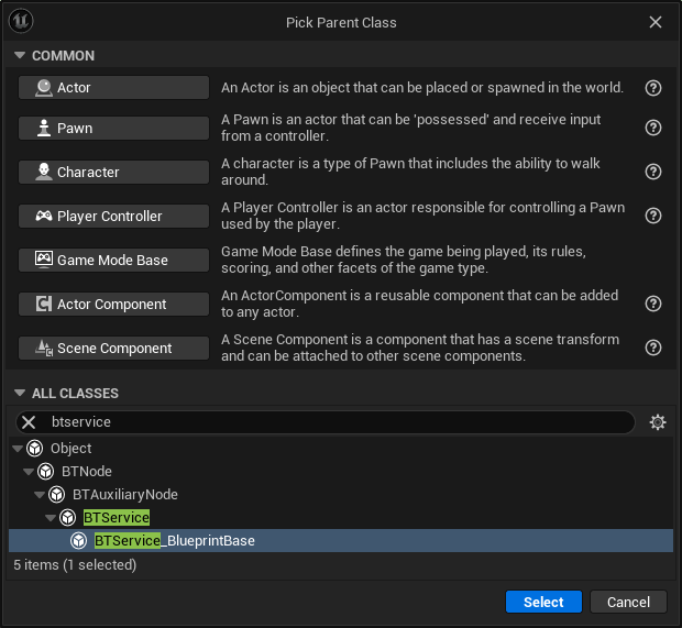 BTService_BlueprintBase 기반 BTx_FindNearestPlayer 블루프린트를 생성한다.