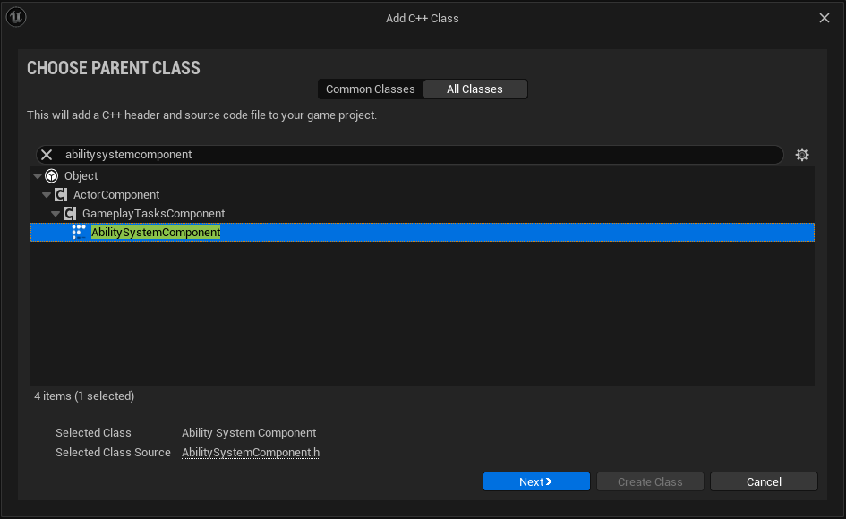만약 문제 발생시 모듈의 GameplayAbilities 를 private에서 public으로 이동시킨다.